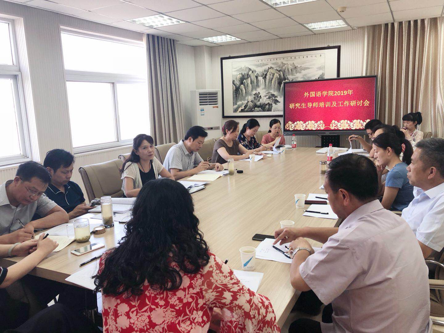 8月15日下午,我院在人文楼5楼会议室召开了2019年研究生导师培训及工作研讨会,院长蔡满园,副院长朱丽,姚光金等20位导师出席会议。会议以进一步加强我校研究生导师队伍建设,提高和保障研究生培养质量为重点进行研讨交流。
