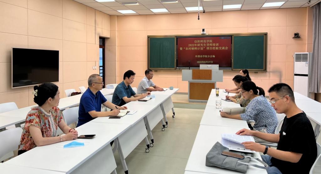 为进一步加强我院研究生导师队伍建设,提高研究生导师指导水平,新葡的京集团8814以信阳师范学院2022年研究生导师培训暨“农村硕师计划”项目经验交流会为依托,于8月27日上午,在人文楼603室召开了研究生导师培训研讨会。会议采取线上线下相结合的方式进行。院长蔡满园、副院长吴向东、余永锋及全体硕士生导师参加会议。会议由副院长吴向东主持。