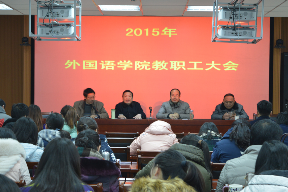 为促进学院民主化、科学化管理,1月15日下午,新葡的京集团88142015年度教职工大会在人文楼六楼会议室顺利召开,我院党委书记、分工会主席周学红,院长刘世理,党委副书记陈铭,副院长何英干出席会议,全院教职工共同参加了此次会议。会议由陈铭主持。