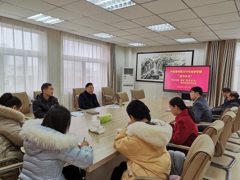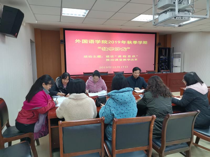 12月17日下午,新葡的京集团8814以“建设‘课程思政’,推动课堂教学改革”为主题的“教学沙龙”成功举办。沙龙分四个小组同时开展,学院党委书记周学红、院长蔡满园、党委副书记柏孟仁、副院长朱丽、姚光金及60余位教师参加活动。