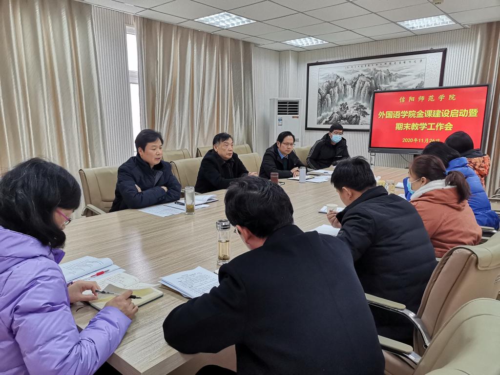 11月26日下午,新葡的京集团8814在人文楼五楼小会议室召开“金课”建设启动暨期末教学工作会议,党委书记周学红、院长蔡满园、副院长姚光金、各系主任(副主任)、第二外语教研室主任、教学督导、教学秘书及教务员等参加了会议。会议由姚光金主持。