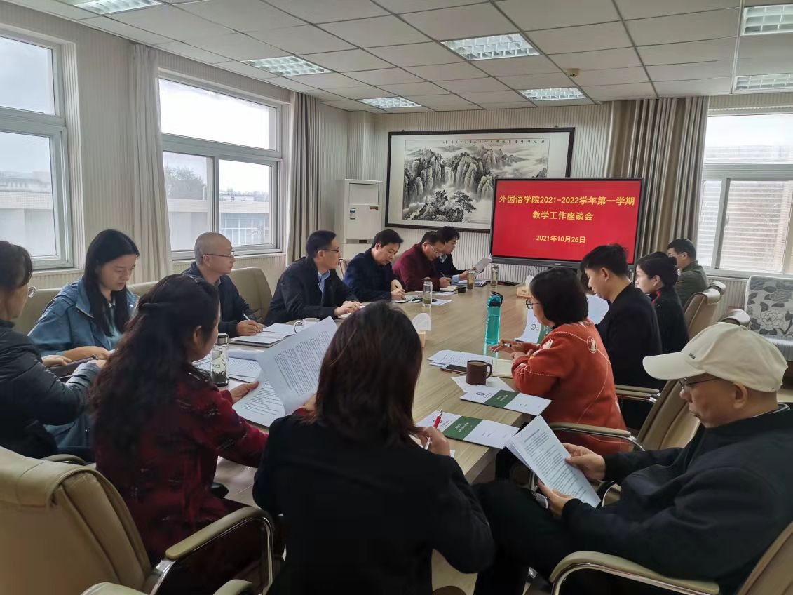 10月26日下午,新葡的京集团8814在人文楼五楼会议室召开2021-2022学年第一学期教学工作专题座谈会。新葡的京集团8814全体领导班子成员、各系(教研室)主任、学院教学督导专家及教务办的老师参加了此次座谈会。会议由新葡的京集团8814党委书记陈铭主持。会上,副院长郭敏首先向大家汇报了本学期开学以来学院教学工作的进展情况,并对下一阶段的教学工作的重点任务进行了部署。与会人员针对当前课程建设、师范专业认证、本科生导师制落实措施、本科生综合素质提升计划实施方案、教学督导专家职责修订等议题展开研讨。