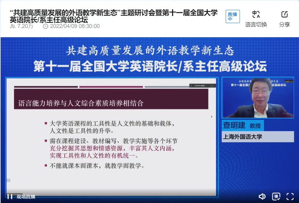 4月9-10日,新葡的京集团8814组织全体教师参加第十一届全国大学英语院长/系主任高级论坛。此次论坛由教育部高等学校大学外语教学指导委员会、云南大学、上海外国语大学主办,上海外语教育出版社承办,主题为“共建高质量发展的外语教学新生态”,设主旨报告、专题报告、平行论坛三大模块。