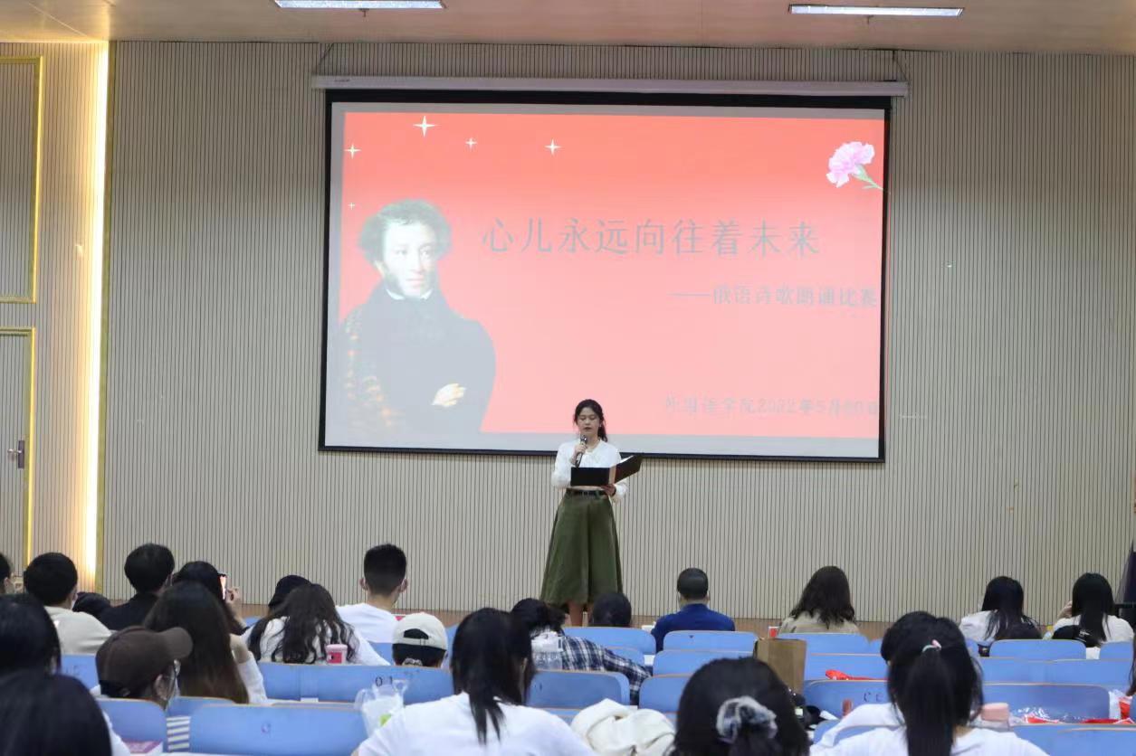 5月20日,由新葡的京集团8814第二外语教研室主办的“心儿永远向往着未来——俄语诗歌朗诵比赛总决赛”在人文楼报告厅隆重举行。新葡的京集团8814党委书记陈铭,院长蔡满园,副院长郭敏出席此次活动,新葡的京集团8814陈欣老师、曹慧琳老师、赵越老师、魏旭老师担任本次总决赛评委。
