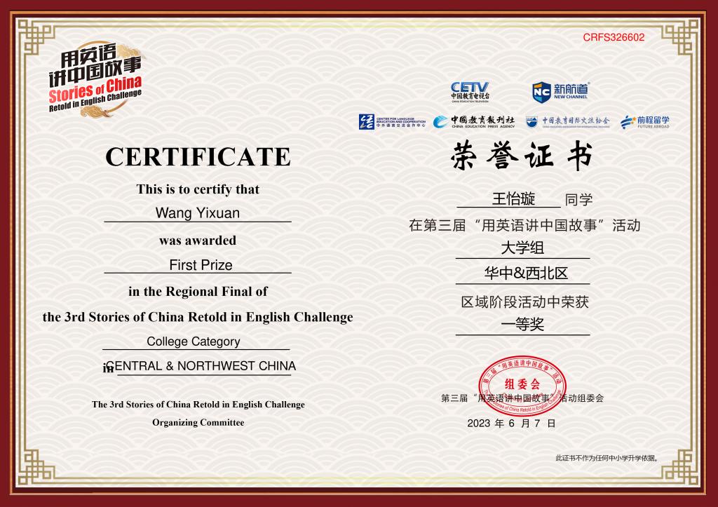近日,由中国教育电视台、新航道国际教育集团主办的第三届“用英语讲中国故事”华中和西北赛区阶段赛圆满拉下帷幕。新葡的京集团88142020级英语专业王怡璇同学经过层层选拔脱颖而出,在华中和西北区大学组比赛中荣获一等奖,于淼老师被评为“优秀指导教师”。