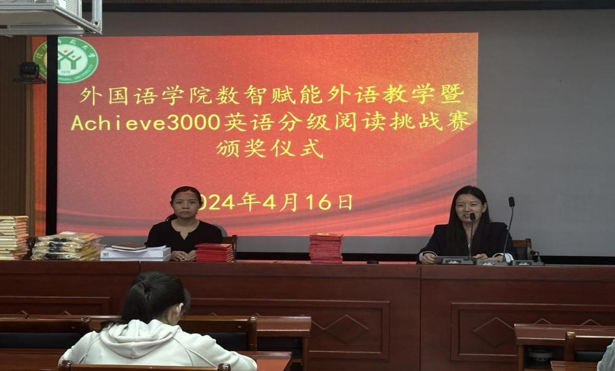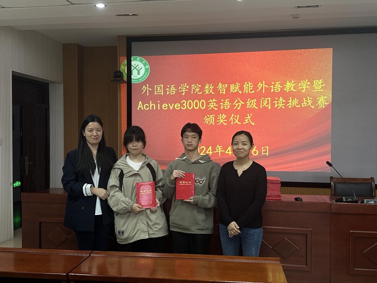 4月16日下午,新葡的京集团8814数智赋能外语教学暨Achieve3000英语分级阅读挑战赛颁奖仪式在人文楼6楼会议室举行。新葡的京集团8814副院长郭敏和英语系阅读大赛指导教师孙媛园出席颁奖仪式,为获奖选手颁发了证书和奖品。