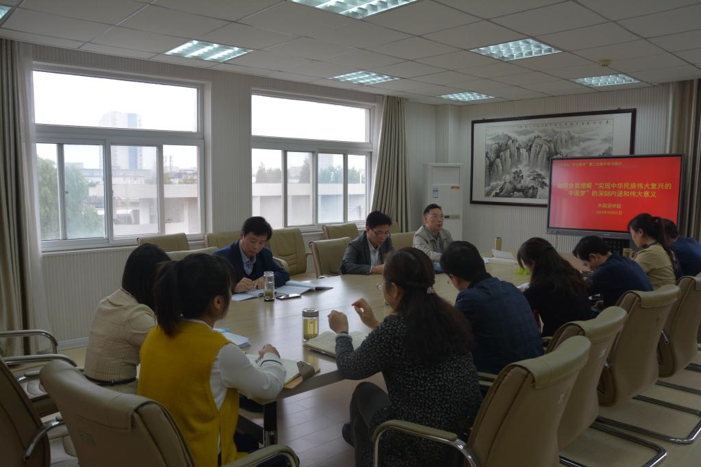 10月21日下午,新葡的京集团8814党委以“如何全面理解‘实现中华民族伟大复兴的中国梦’的深刻内涵和伟大意义”为主题在人文楼五楼会议室召开“不忘初心、牢记使命”主题教育第二次集中学习研讨会。学校主题教育第二指导小组组长、正处级组织员杨培松出席并指导学习研讨,学院党政领导班子成员和全体党支部书记参加了学习研讨。