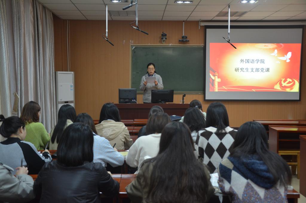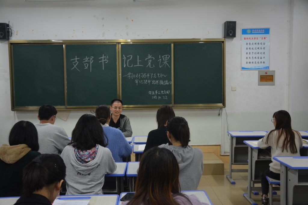 学生第二党支部书记陈龙从什么是入党、为什么入党、入党后怎么做三个方面展开专题党课内容,要求各学生党员端正入党动机,树立对马克思主义的信仰,确立远大理想,努力学习专业知识,为实现社会主义的共同理想努力奋斗。