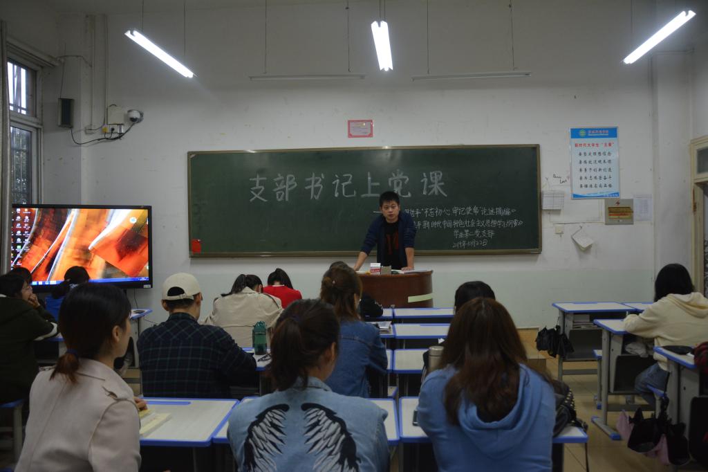 学生第四党支部书记孙桢桢以“青春遇上新时代,同心共筑中国梦”为题,要求学生党员脚踏实地,志存高远,把学习作为首要任务,鼓足干劲,奋力创造新业绩。
