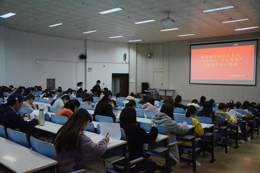 为扎实推进“不忘初心、牢记使命”主题教育,全面检验学生党员近期主题教育学习成果。10月29日晚,新葡的京集团8814在人文楼报告厅组织开展了“不忘初心、牢记使命”主题教育应知应会知识集中测试测试活动,学院全体学生党员、预备党员和党员发展对象参加了测试。