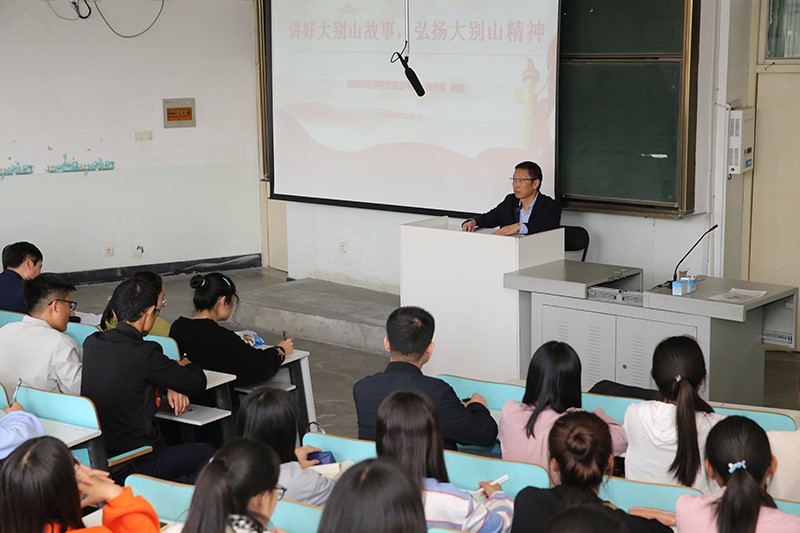 11月1日,校党委副书记郜火星围绕学习贯彻习近平总书记关于传承红色基因的重要讲话精神,以“讲好大别山故事、弘扬大别山精神”为主题,在人文楼209教室为我院师生上思政课。新葡的京集团8814领导班子成员,各级辅导员和120余名学生聆听了思政课。