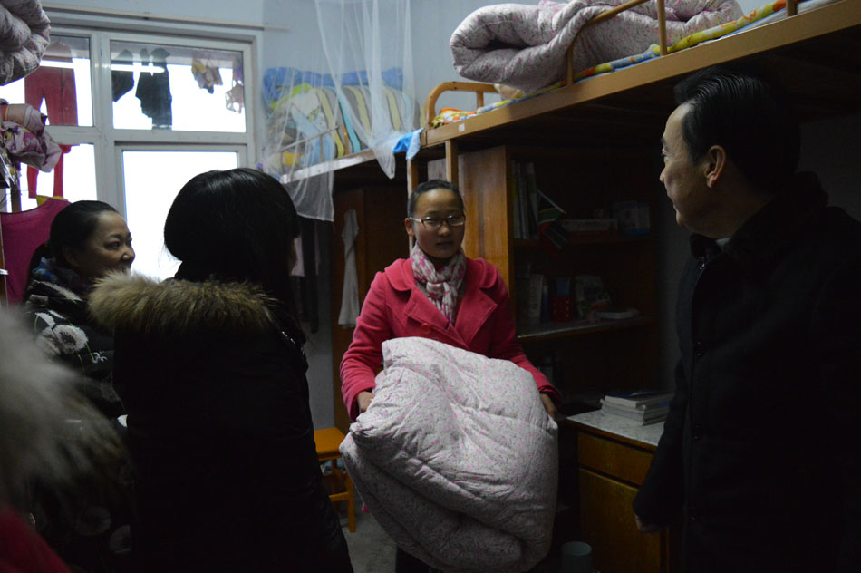 为响应学校号召,12月11日下午,我院党委书记周学红,党委副书记陈铭和各年级专职辅导员一同前往学生宿舍为家庭经济困难学生发放过冬棉被,送去学院温暖。
