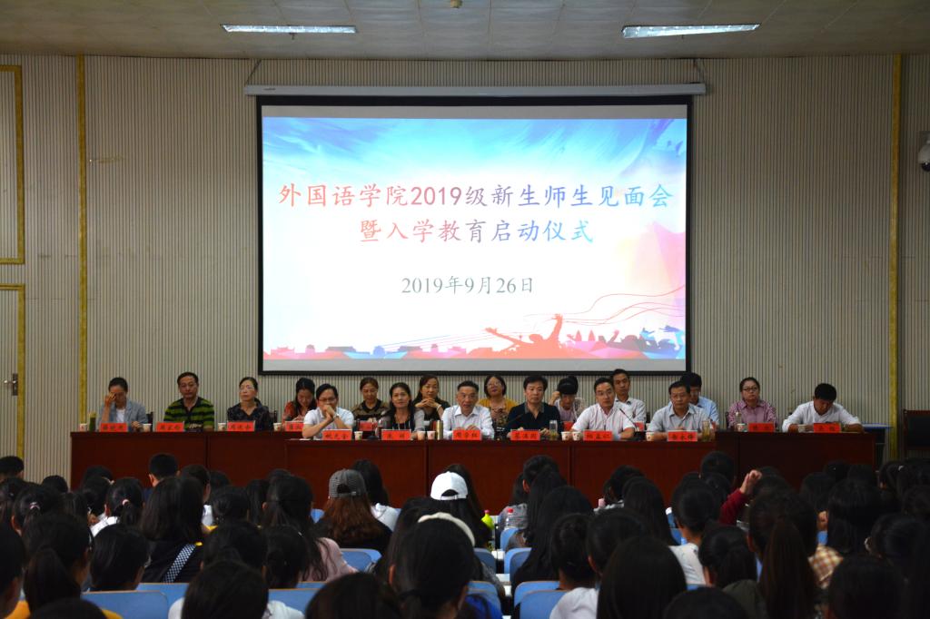 9月26日下午,我院在人文楼报告厅举行2019级新生师生见面会暨入学教育启动仪式。院党委书记周学红,院长蔡满园,副院长朱丽,党委副书记柏孟仁,副院长姚光金,党委委员余永锋,部分教师代表和全体辅导员出席见面会,2019级全体新生参加见面会。会议由柏孟仁主持。