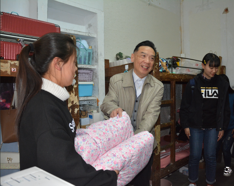 走访过程中,周学红一行与同学们亲切交谈,询问他们的学习和生活情况,提醒同学们一定要注意防寒保暖,并亲手将爱心棉被送到他们手中。周学红叮嘱同学们要养成良好的生活习惯,营造良好的宿舍氛围,同时鼓励他们树立远大理想,勇于砥砺奋斗,勇做新时代的弄潮儿。同学们深受感动,纷纷表示一定会发奋学习,锤炼过硬本领,以实际行动回报学校和社会。
