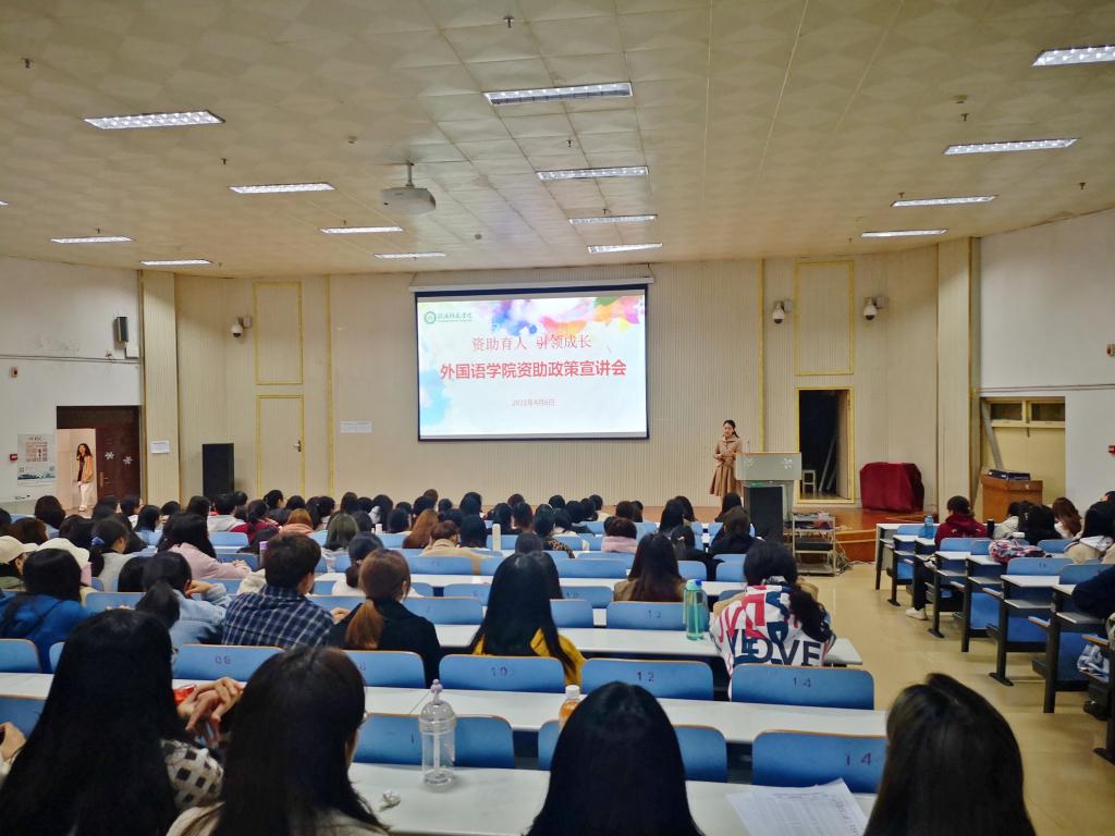 4月6日,新葡的京集团8814于人文楼报告厅组织召开国家资助政策宣讲会。此次宣讲活动由新葡的京集团8814资助专员孙桢桢主持,2017级全体学生参加会议。