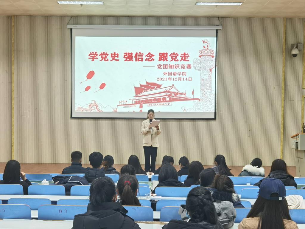 为深入学习贯彻党的十九届六中全会精神,更好的教育引导广大青年坚定不移听党话、矢志不渝跟党走。新葡的京集团8814举办“学党史,强信念,跟党走”党团知识竞赛,2021级全体学生参加活动。