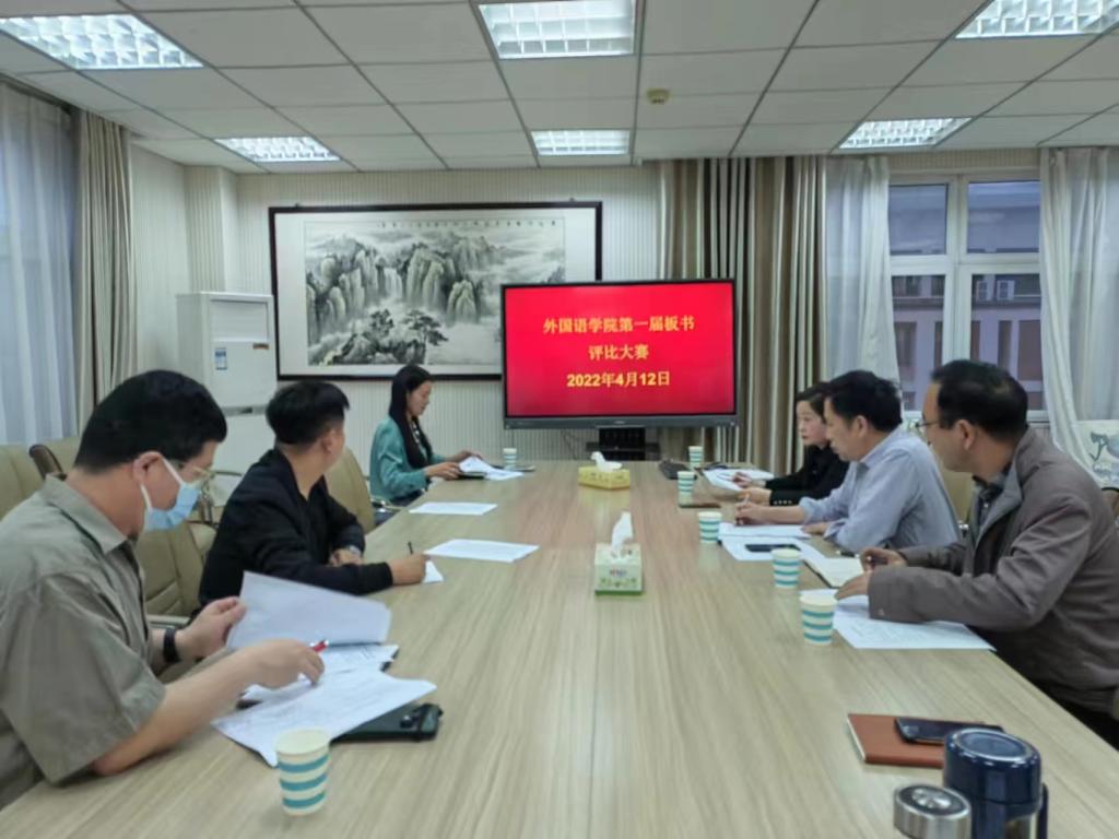 4月12日下午,我院在人文楼501会议室召开“第一届外文板书简笔画活动”评审会,学院各基层教学组织负责人担任评委。