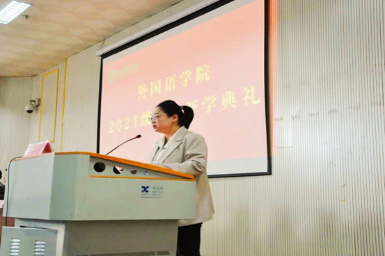 开学典礼在庄严的国歌中拉开帷幕。蔡满园对2021级全体新生表示衷心祝贺与热烈欢迎,他简要介绍了信阳、学校、学院的基本情况,并寄语全体新生,一要学会学习,终身受益;二要学会思考,升华人生;三要学会担当,再续辉煌。
