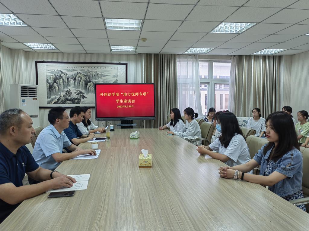 为贯彻落实好优秀教师定向培养计划和培养方案,落实国家推进实施乡村振兴战略的重要举措,切实培养好“地方优师专项计划”的师范生,深入了解“优师计划”学生的需求,9月30日下午,我院在人文楼501会议室召开“地方优师专项”学生座谈会。学院党委书记陈铭、院长蔡满园、党委副书记高彦伟、副院长郭敏及“地方优师专项计划”2022级学生代表参加会议,会议由郭敏主持。