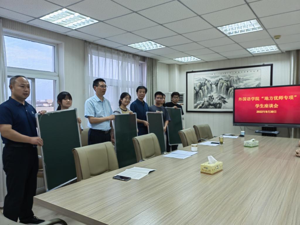 座谈会上,党委书记陈铭、院长蔡满园、党委副书记高彦伟、副院长郭敏还为学生们发放了小黑板,字帖等学习用具。同时,鼓励学生们积极参加学院举办的英语口语大赛、演讲比赛和教师板书比赛等。