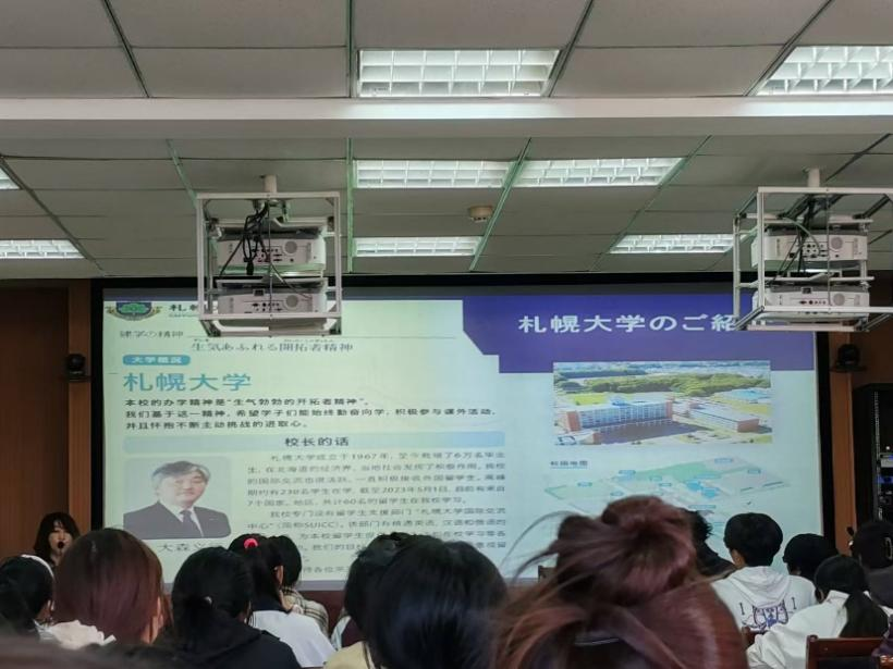 随后,野中科长对札幌大学面向我校的一年交换留学项目和2+2留学项目进行了详细介绍,特别针对同学们普遍关心的入学申请条件和专业选择相关事宜进行了深入解读。在互动交流环节,野中科长还耐心解答了同学们的提问,消除了同学们对赴日留学生活及专业发展前景等方面的疑问。