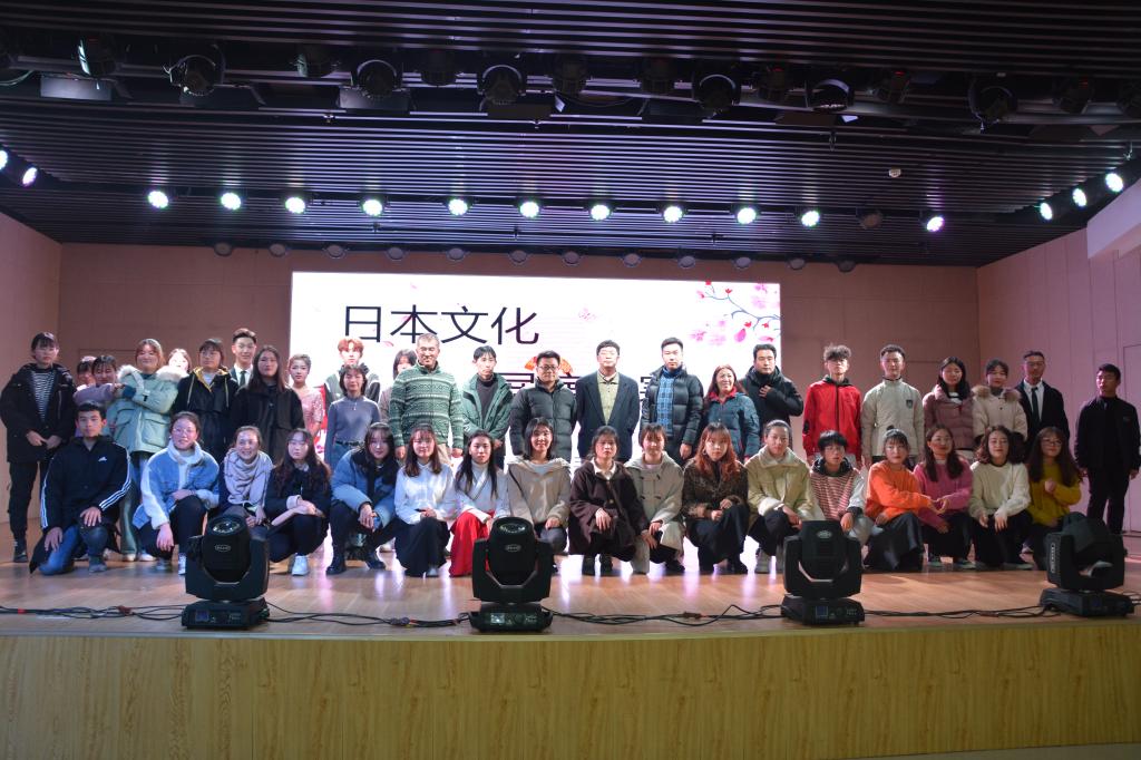 12月8日晚,新葡的京集团8814樱花日语社在理科楼报告厅举办第二届日本文化展演大赛。评委老师周业勤、张鸿鹏,外教小林郁、田口晴近,我院团委书记孔宪巍与500余名学生共同观看比赛。