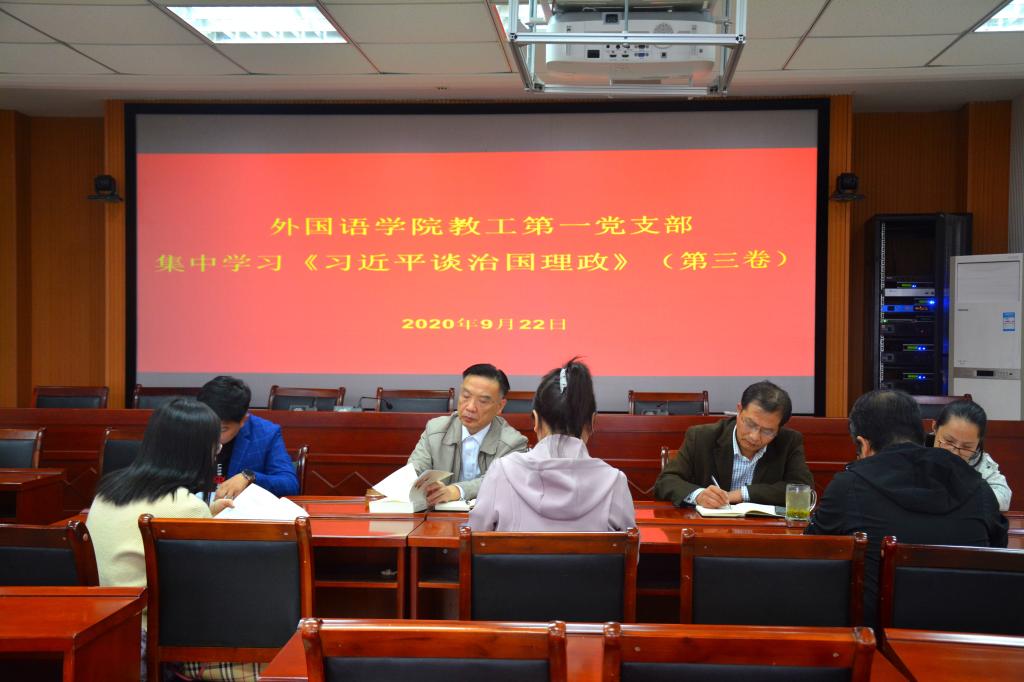 9月22日下午,新葡的京集团8814各教工党支部分别组织教工党员开展《习近平谈治国理政》第三卷专题学习研讨活动。