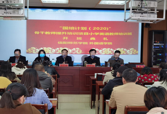 10月30日上午,“国培计划(2020)”小学英语骨干教师提升培训班开班典礼在人文楼报告厅举行。新葡的京集团8814党委书记周学红,院长蔡满园,党委副书记柏孟仁,副院长朱丽、姚光金,研修班班主王艳、吴恒出席典礼,来自驻马店、信阳地区10个市、县基础教育一线的四十余名学员参加典礼。