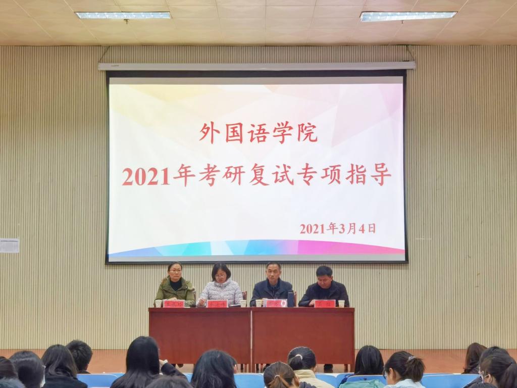 3月4日晚,我院在人文楼报告厅开展2021年考研复试专项指导报告会。报告会邀请余运伟、曹万忠、王辰玲、吴恒等四位老师为同学们做专题指导,毕业班班主任周旋、孙桢桢、郗金月和我院2017级、2018级考研学子共同参加报告会。报告会由学院党委副书记柏孟仁主持。
