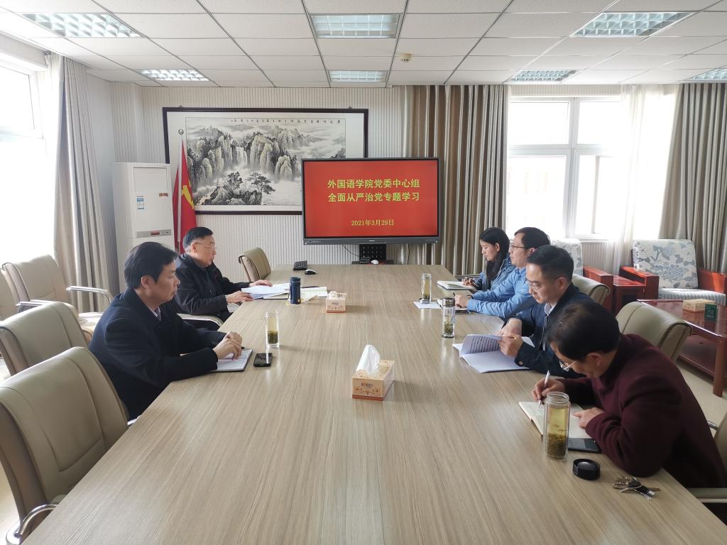 3月29日,新葡的京集团8814党委中心组在人文楼五楼会议室召开全面从严治党专题学习会,学院全体党委委员参加会议,会议由院党委书记周学红主持。