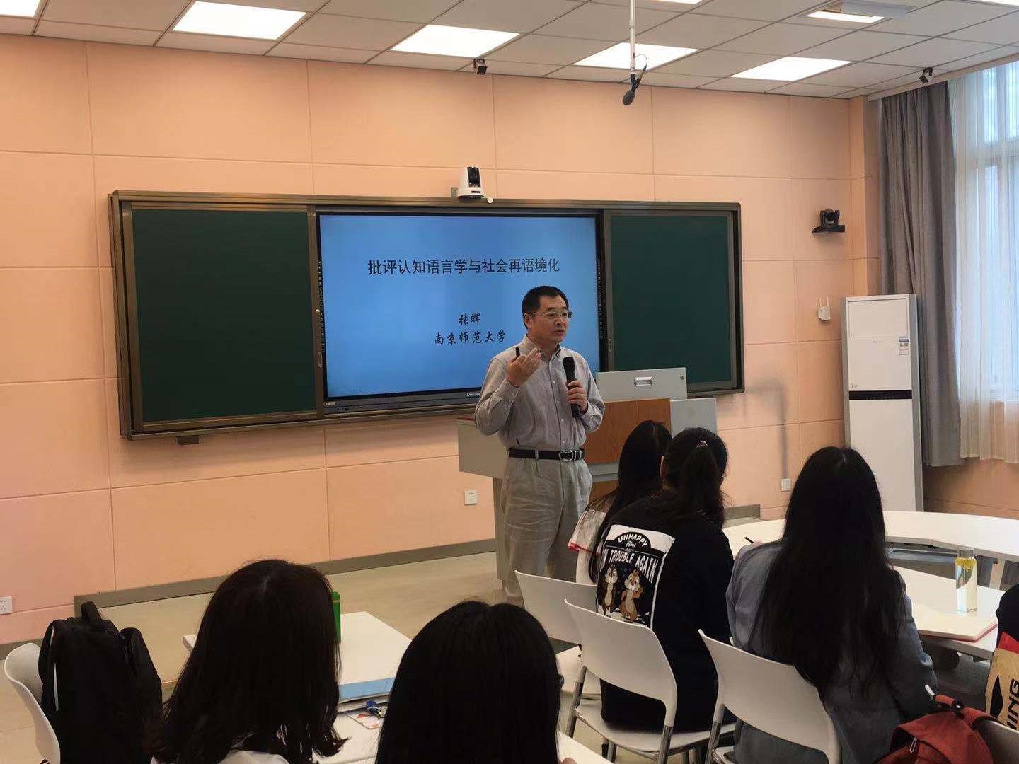 5月13日,应新葡的京集团8814邀请,南京师范大学特聘教授、博士生导师张辉教授在人文楼603教室为我院师生作了题为“批评认知语言学与再语境化”的学术报告,新葡的京集团8814全体研究生和部分教师聆听了报告。报告由新葡的京集团8814蔡满园院长主持。