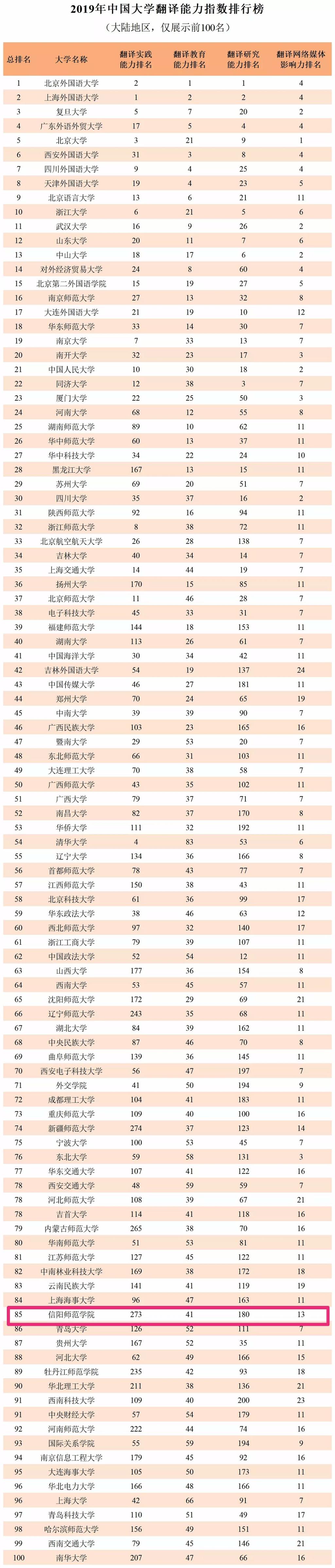 5月22日,北京外国语大学国家翻译能力研究中心重要研究成果“全球国家翻译能力指数”和“中国大学翻译能力指数”首发式在阿语楼国际会议厅举行,这是全球首个国家翻译能力指数和大学翻译能力指数。我校在该排行榜上位居全国第85名、河南省第3名,省内排名仅次于河南大学和郑州大学。