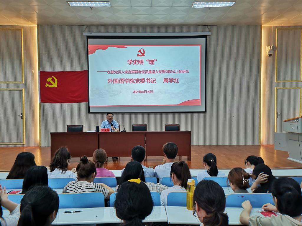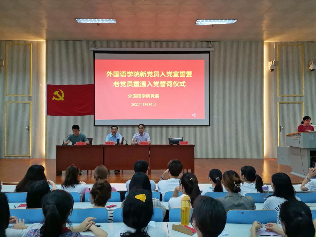 6月10日下午,我院在人文楼报告厅举行新党员入党宣誓暨老党员重温入党誓词仪式。学院党委书记周学红、党委副书记柏孟仁出席会议,各学生支部书记和全体学生党员参加了此次大会。会议由专职组织员陈龙主持。