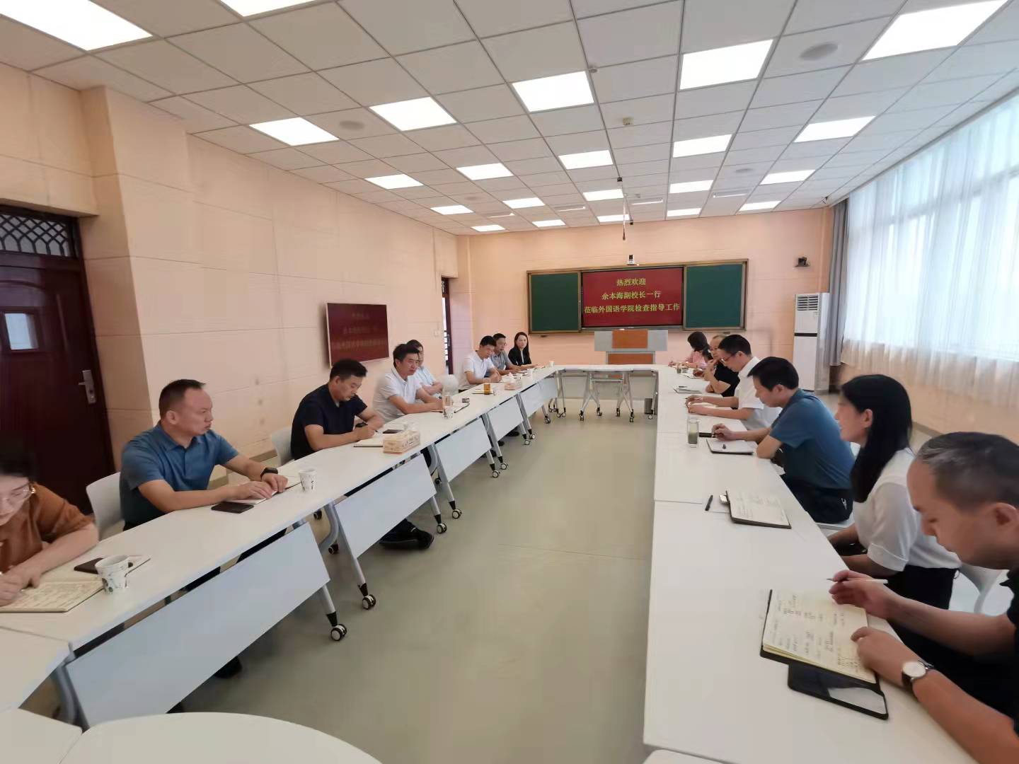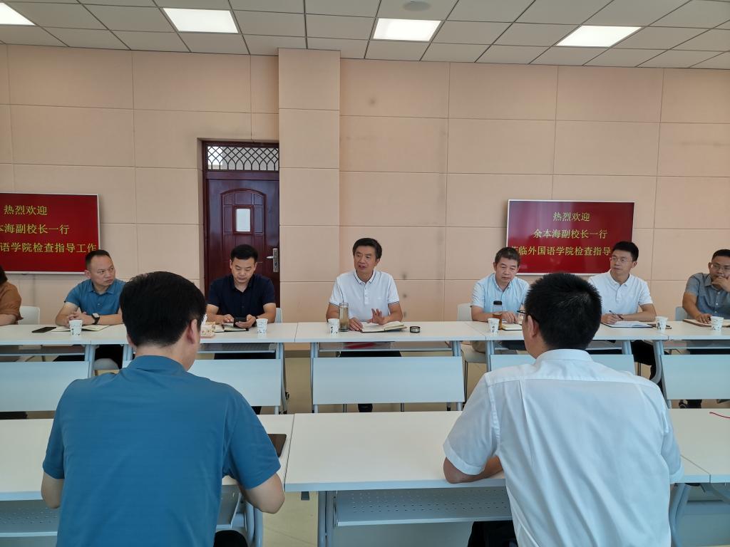 余本海副校长认真听取了我院领导班子对教学和科研工作的汇报,对学院的工作给予了充分肯定,并对我院教学和科研工作提出了四点要求:第一,切实推进教学改革,设定外语课程“金课”标准,积极探索“金课”建设途径,努力打造出可复制、可推广的“金课”建设模式;第二,拓展科研思路,认真落实科研项目申报工作;第三,创新工作思路,与其他机构共建外语教学科研平台;第四,优化整合师资队伍,着力提高人才培养质量。