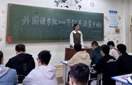 为进一步推进我院学生征兵宣传工作,帮助学生了解、掌握应征入伍相关政策和流程,10月5日,我院于人文楼101教室组织召开2021年秋季征兵政策宣讲会,学院党委副书记高彦伟、武装干事孙桢桢、退役大学生士兵张慧娟及2021级全体男生参加会议。宣讲会由孙桢桢主持。