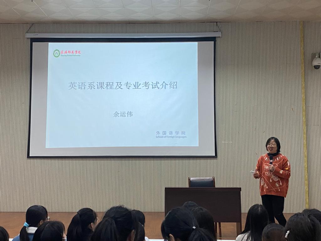 余运伟从专业学习、课程结构、学分构成、第二外语学习等方面介绍了英语专业人才培养情况,结合专业培养方案,为同学们提出专业学习建议,并就英语专业等级考试的注意事项作了说明。余运伟希望同学们能够认清定位,明确目标,确定方向,妥善处理好自我与他人、学习与娱乐、挑战与成就的关系,在大学中收获知识、收获成长。