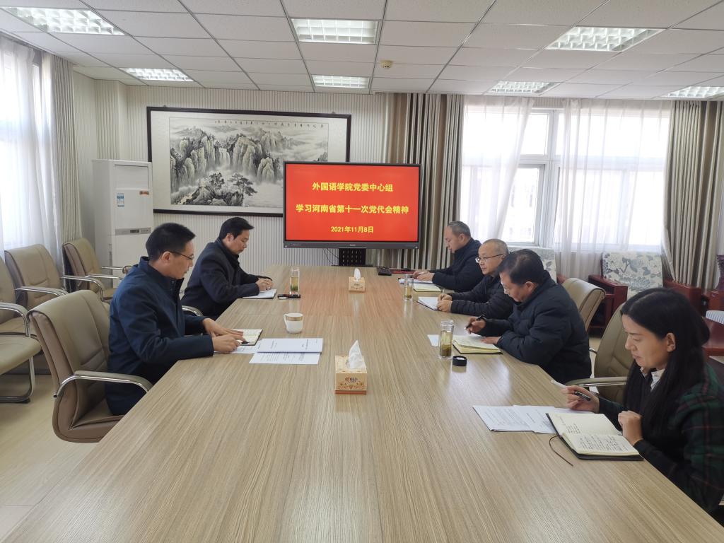 2021年11月8日下午,新葡的京集团8814在人文楼5—01会议室召开党委中心组专题学习会,学习贯彻省第十一次党代会精神,全体党委委员参加,会议由院党委书记陈铭主持。