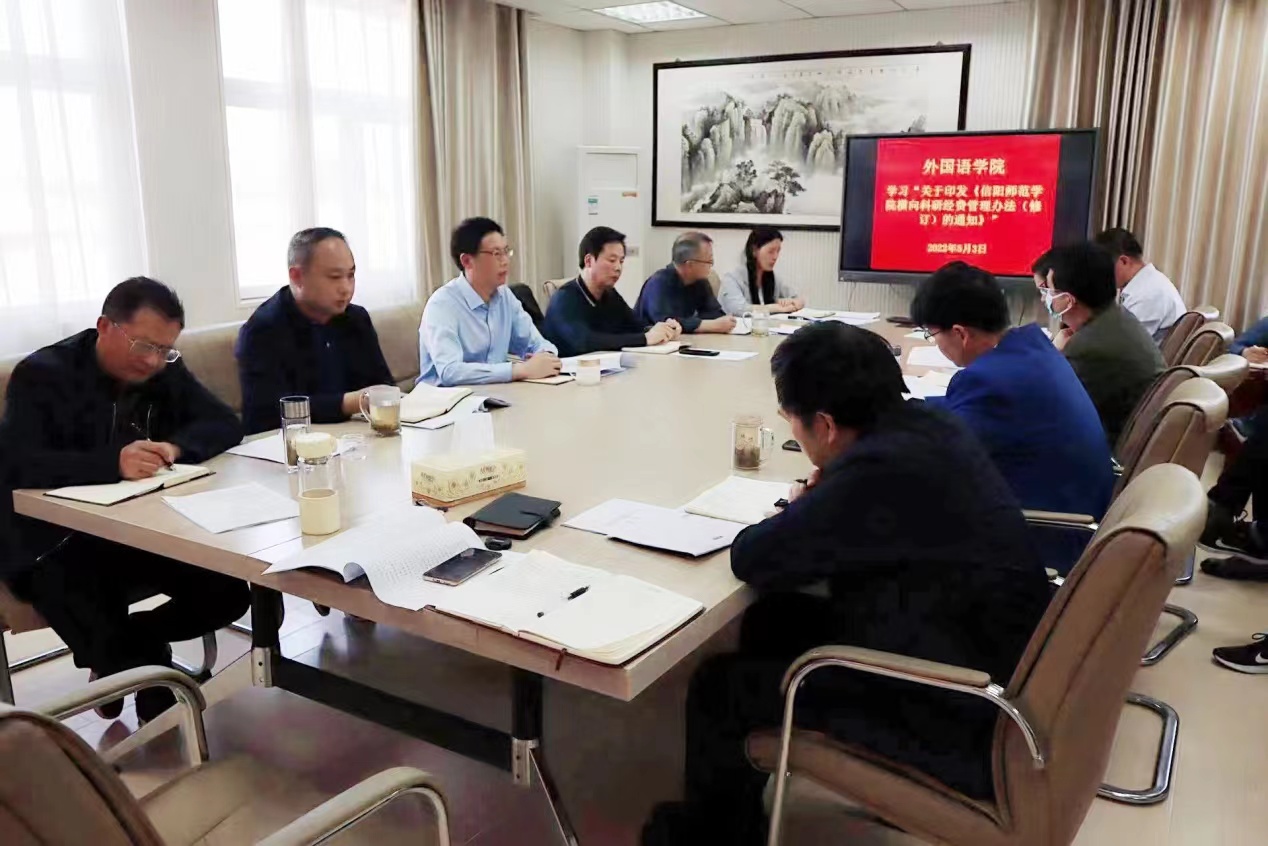 2022年5月3日下午,新葡的京集团8814组织教师在人文楼5楼会议室学习了“关于印发《信阳师范学院横向科研经费管理办法(修订)的通知》”的座谈会。新葡的京集团8814全体领导班子成员、各基层教学组织负责人及承担横向科研项目的教师参加了本次座谈会。座谈会由副院长郭敏主持。