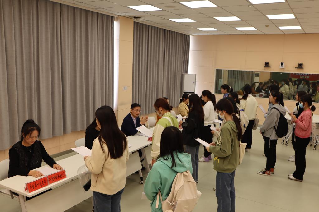 学院各党支部于人文楼603室设立入党申请书递交点,共有539名入党申请人向党支部书记递交入党申请书。递交过程中,各党支部书记认真审看入党申请书并进行指导。入党申请人纷纷表示,在党的二十大胜利召开之际,向党组织递交入党申请书,更是向党组织郑重承诺,将以一名正式党员的标准严格要求自己,勇于接过历史的接力棒,积极担当时代责任。
