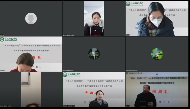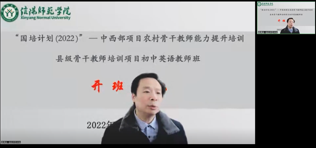 12月15日上午,“国培计划(2022)”县级骨干教师提升培训初中英语教师培训班开班典礼通过腾讯会议在线上举行。新葡的京集团8814院长蔡满园、副院长余永锋、一线导师团队新县首府实验中学校长黄庆友、刘文娟、黄丽、杨艳、朱转转及培训班班主任杨恩莲出席典礼。来自濮阳、漯河及信阳等3个地市基础教育一线的近50名学员参加典礼。开班典礼由余永锋主持。