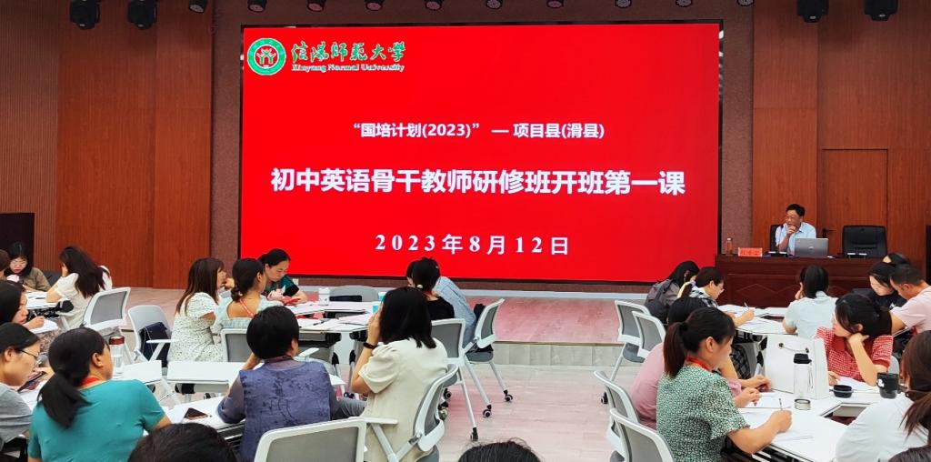 8月12日上午,“国培计划(2023)”项目县(滑县)初中英语骨干教师培训班开班典礼在人文楼报告厅举行。新葡的京集团8814党委书记陈铭、院长蔡满园、副院长余永锋、章彩云,滑县教师进修学校文史部主任李隐、副主任侯小琛,滑县初中英语教研员李文玲及培训班班主任宋冬梅、黄艳文出席典礼,来自滑县基础教育一线的50名学员参加典礼。开班典礼由余永锋主持。