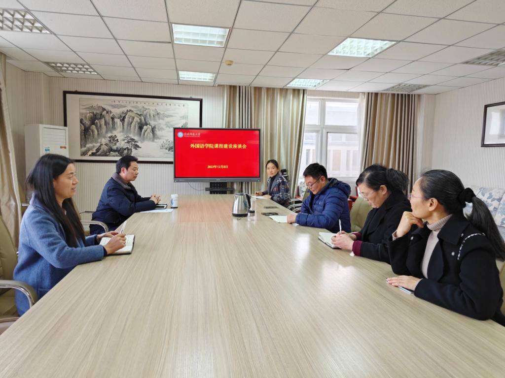 2023年12月8日,语言学课程组课程建设座谈会在人文楼5楼会议室召开,新葡的京集团8814院长蔡满园、副院长郭敏、语言学课程组负责人聂思成及课程组全体团队成员参加了本次座谈。
