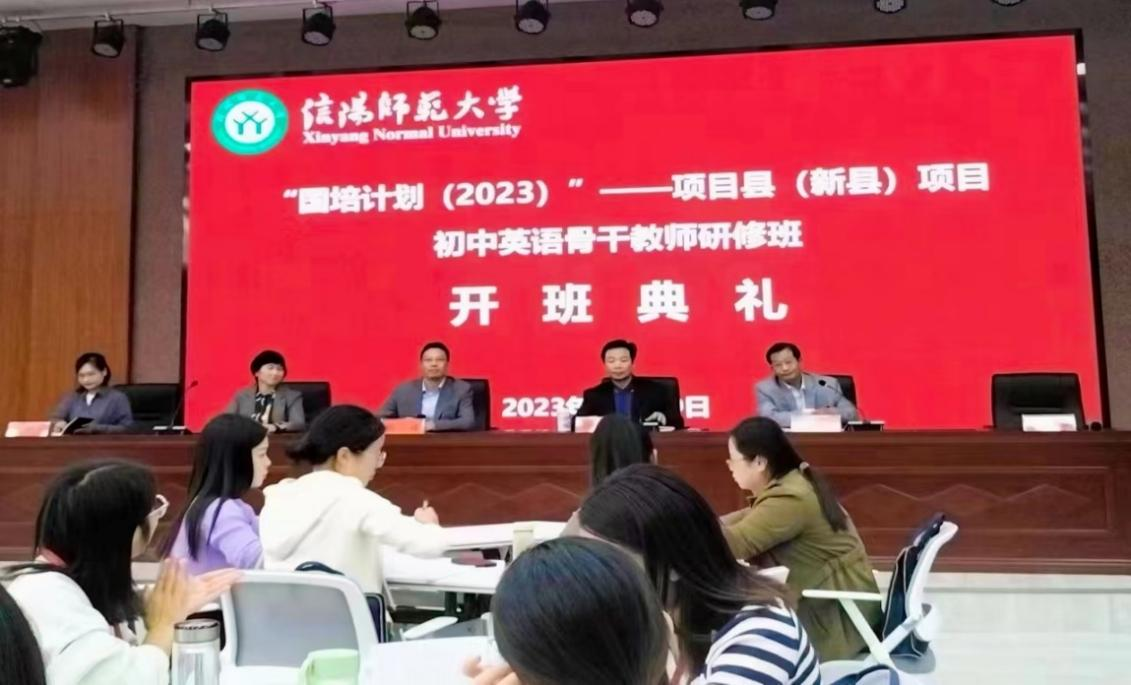 10月9日下午,“国培计划(2023)”项目县(新县)初中英语骨干教师培训班开班典礼在人文楼报告厅举行。新葡的京集团8814党委书记陈铭、院长蔡满园、副院长余永锋,新县教师发展中心朱小四,研修班班主任余运伟、黄艳文出席典礼,来自新县基础教育一线的50名学员参加典礼。开班典礼由余永锋主持。