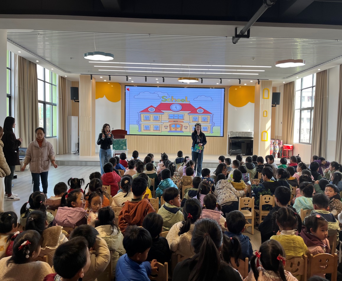 3月9日上午,新葡的京集团8814志愿者在郭敏副院长的带领下,走进附属幼儿园开展少儿英语启蒙活动。课堂上,志愿者们通过PPT展示、你问我答、分组活动等多种形式和小朋友们进行英语口语互动。在对基本的单词讲解之后,志愿者们带领小朋友们学唱英文歌,在韵律欢快的英文儿歌声中有效引导孩子们正确发音,激发他们对英语的学习兴趣。