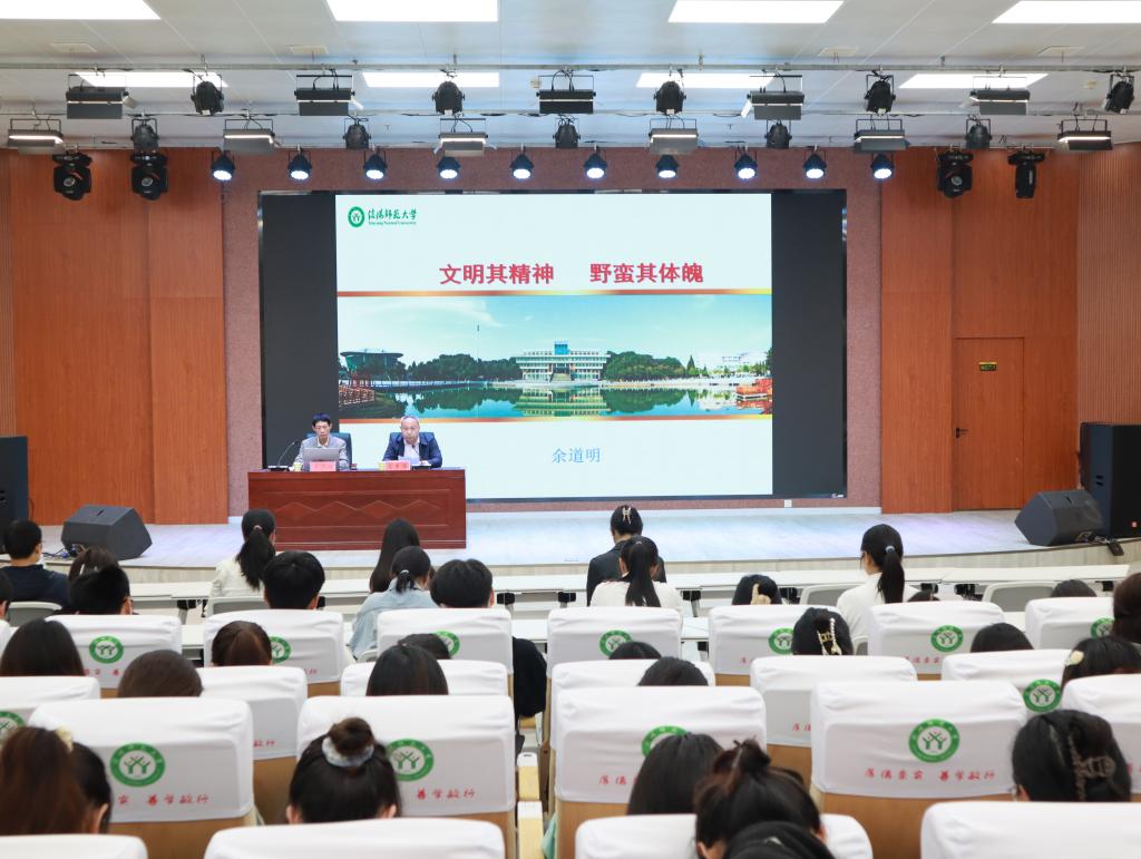 为落实“五育”并举育人理念,增强体育健身意识,促进学生全面发展。4月16日下午,体育学院院长余道明博士应邀为新葡的京集团8814师生作了题为《文明其精神 野蛮其体魄》的专题报告。报告会在五育大讲堂举行,学院全体辅导员、学生干部,全体运动员参加了报告会。报告会由学院党委副书记高彦伟主持。