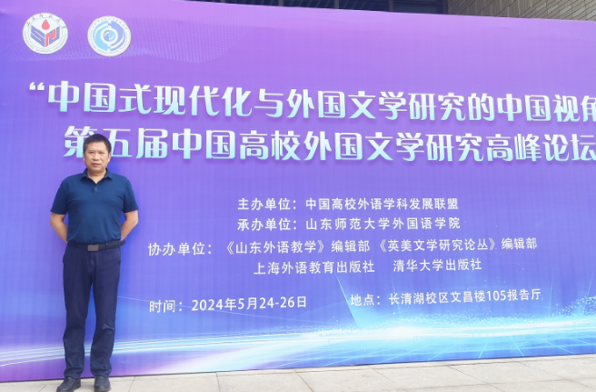 2024年5月24-26日,第五届中国高校外国文学研究高峰论坛在山东师范大学召开,会议主题为“中国式现代化与外国文学研究的中国视角”。学院柳士军教授应邀参加本次研讨会并作主题发言。
