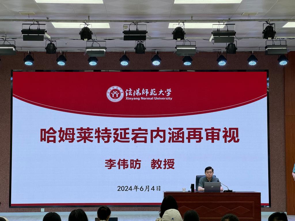 6月4日上午,《河南大学学报》主编、博士生导师李伟昉教授在人文楼报告厅为我院师生作了“哈姆莱特延宕内涵再审视”的专题讲座。此次讲座由新葡的京集团8814院长蔡满园教授主持,学院英美文学研究方向的老师及部分本硕学生100余人聆听了此次讲座。