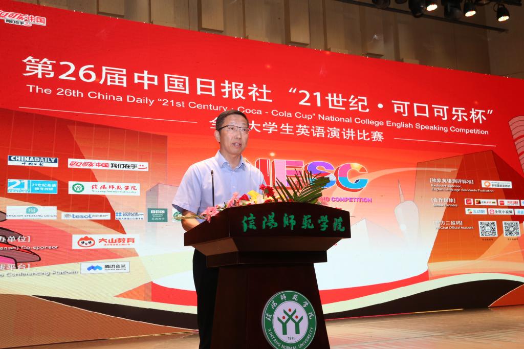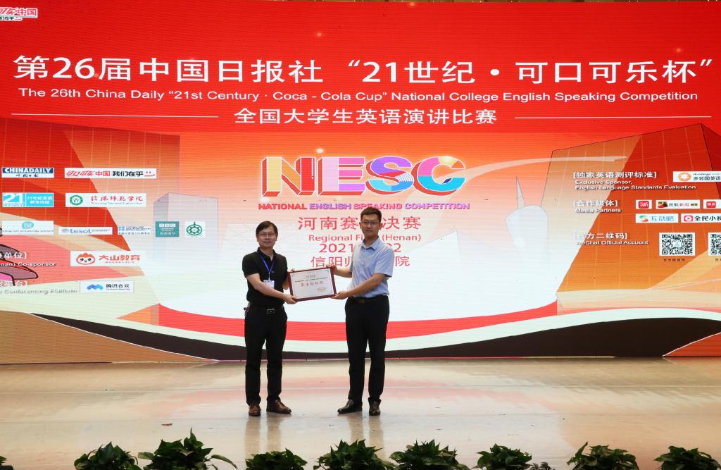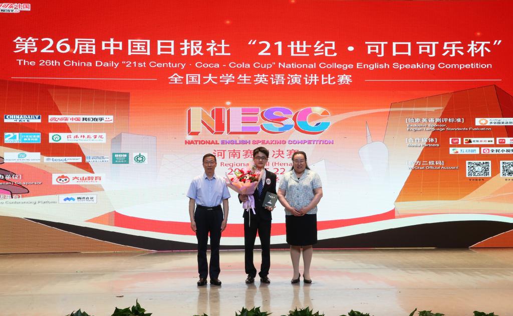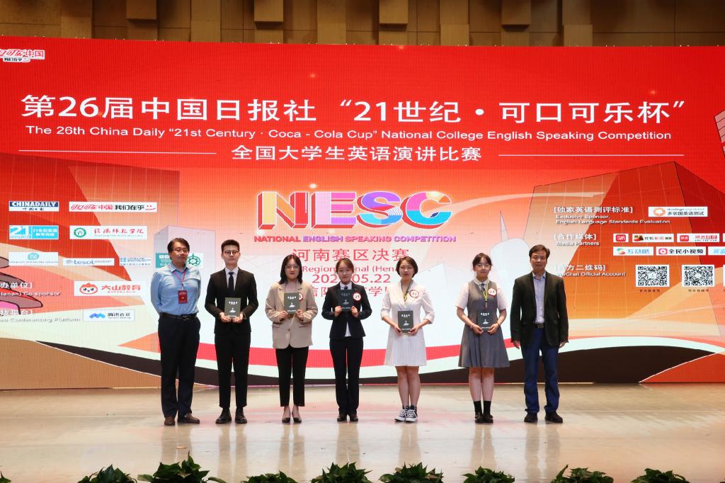 5月22日,由中国日报社主办、中国日报社21世纪英语教育传媒和我校承办、大山教育集团协办的第26届中国日报社“21世纪·可口可乐杯”全国英语演讲比赛河南赛区决赛在艺术楼音乐厅举行。校党委副书记郜火星,中国日报社21世纪英文报河南工作站站长、大赛组委会主任杜琛,大山教育集团联合创始人崔新年应邀出席观看比赛。新葡的京集团8814师生代表共300余人观看了比赛。