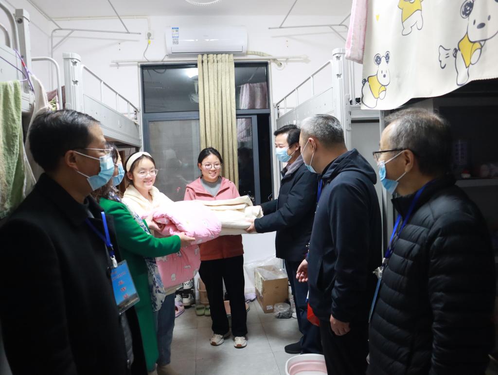 11月24日下午,学院院长蔡满园,党委副书记高彦伟,副院长吴向东、余永锋、章彩云以及全体辅导员深入学生宿舍,走访慰问学院贫困生,并为贫困生发放爱心棉被。