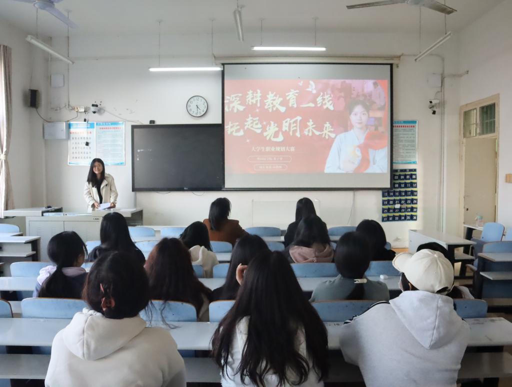 11月1日,新葡的京集团8814在人文楼607教室举办2024年大学生职业生涯规划大赛,学院辅导员孔宪巍、郗金月出席活动,各年级学生代表现场观摩比赛。